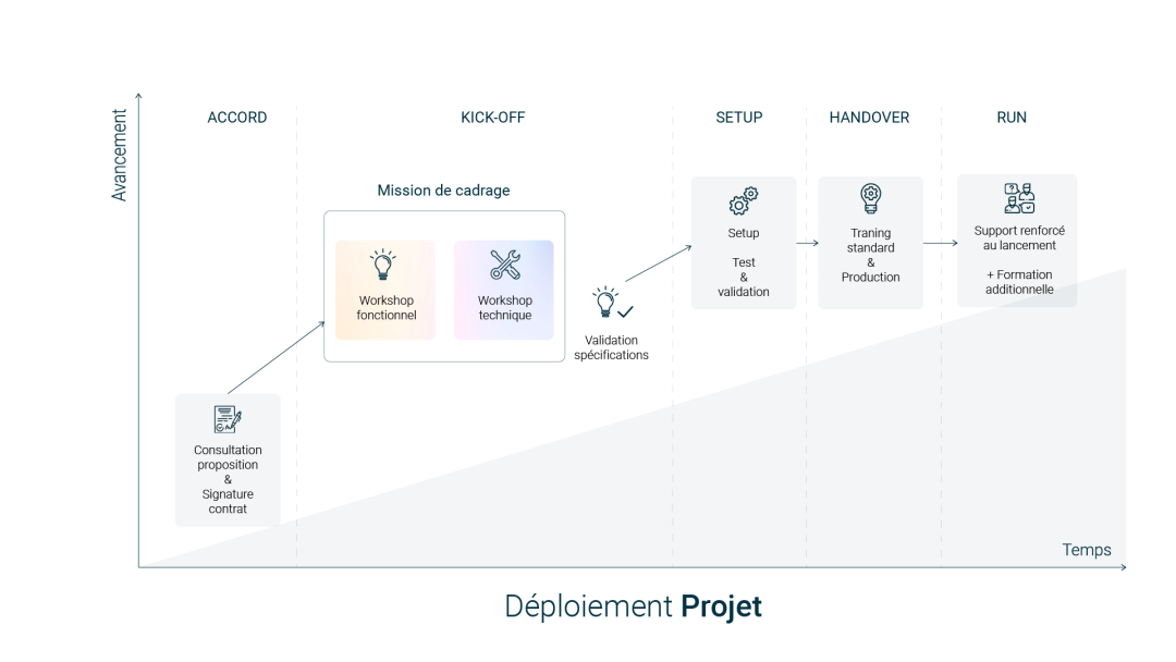 80-90% of the project load is carried out by the client. To guarantee the success of the project, Scal-e provides the complement during the scoping mission and the project points. This project mode :